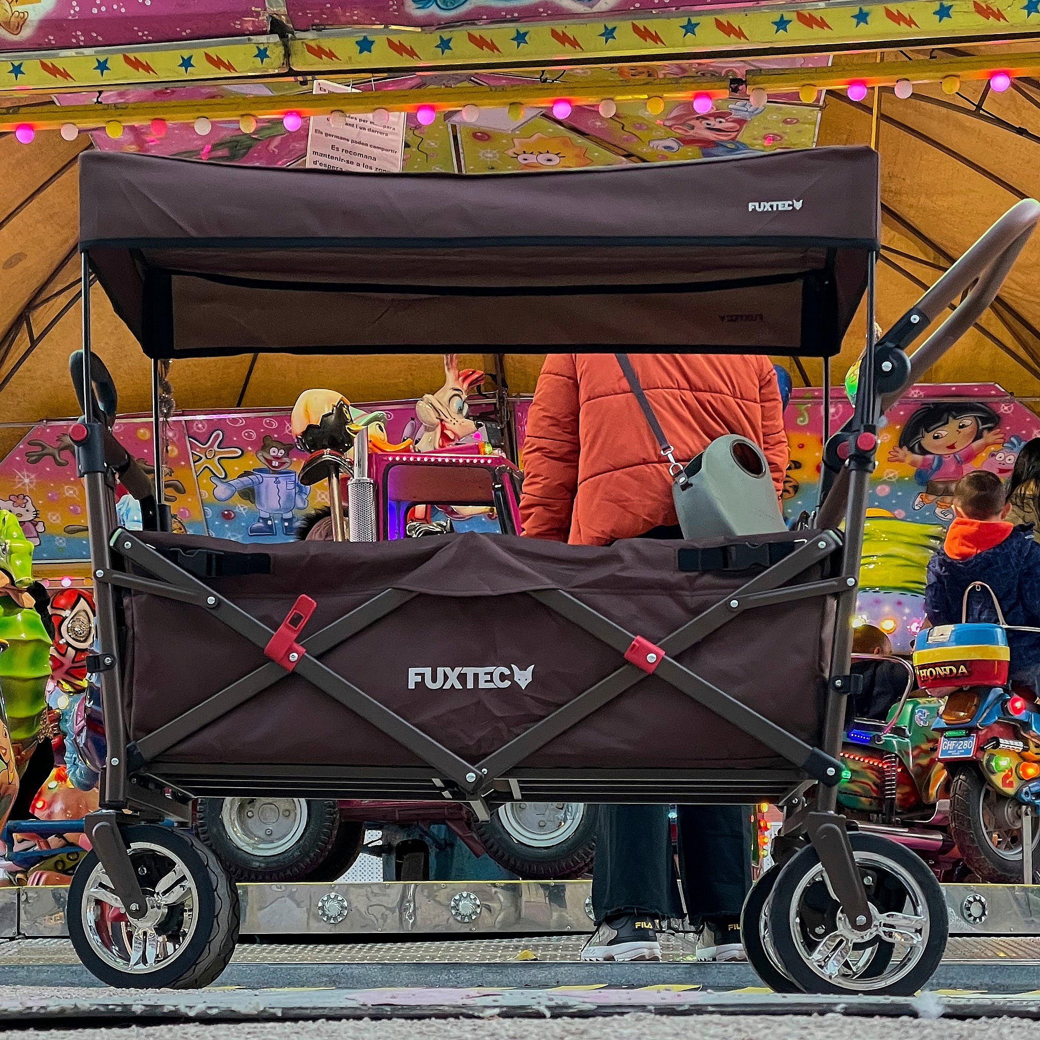 Der Bollerwagen FX-CT700 bietet mit UV-geschütztem Sonnendach und zusätzlichem Schiebegriff komfortablen Schutz und einfache Mobilität – ideal für alle, die auch unterwegs clever transportieren möchten.